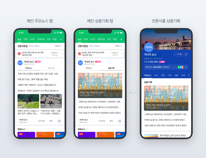 네이버 모바일 언론사편집판과 언론사별 뉴스홈에 기획기사를 별도로 보여주는 '심층기획' 탭이 생긴다.