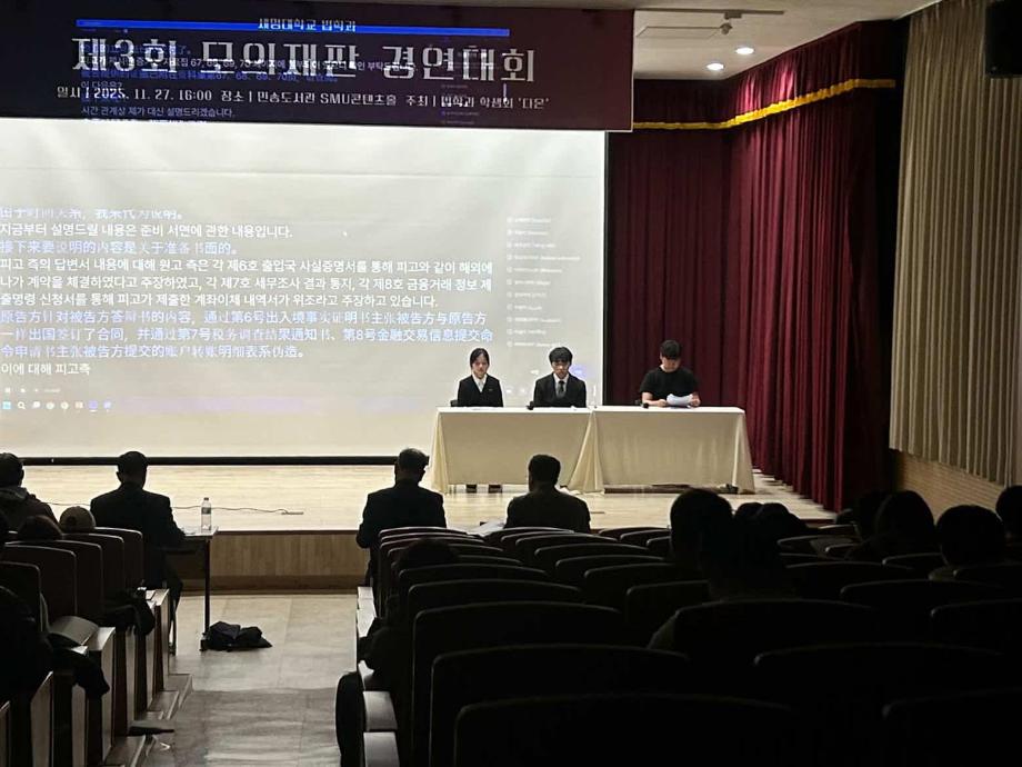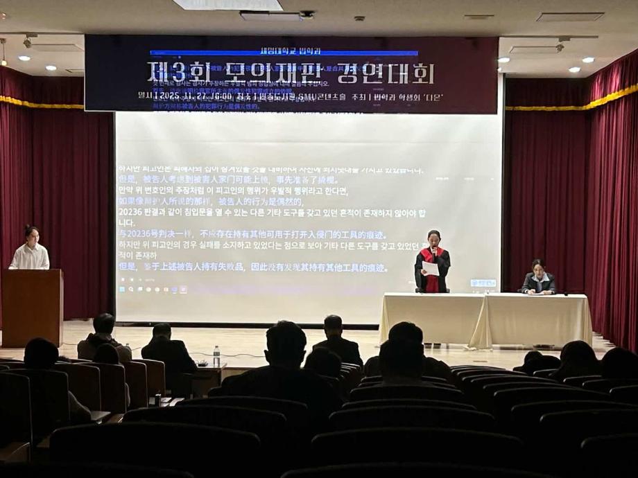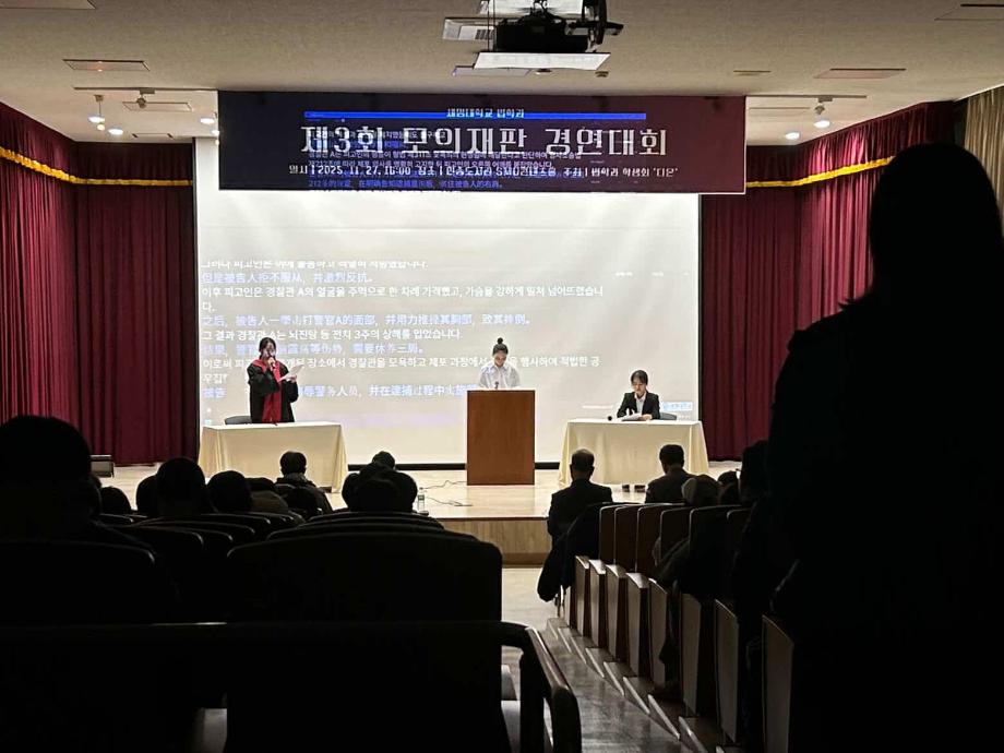 본문 시작 홈으로 커뮤니티 학과안내 교수소개 학과과정 커뮤니티 홈페이지가이드 학과사진첩 공지사항 취업정보 학과사진첩 학과행사 동아리 학생회 교우소식 학과사진첩 페이스북 트위터 프린트 2025학년도 제3회 법학과 모의재판 경연대회 법학과 309 2025-12-03 2025년 11월 27일 민송도서관 1층 콘텐츠홀에서 법학과 모의재판 경연대회 진행하였습니다. 참여하신 모든 분들 고생 많으셨습니다. 목록 이전2025학년도 법학과 특강 담당부서 : 법학과 담당자 : - 연락처 : 043-649-1764 최종수정일 : 2024-10-26 만족도조사 만족도 조사 이 페이지에서 제공하는 정보에 대하여 만족하시나요? 매우만족 만족 보통 불만족 매우불만족