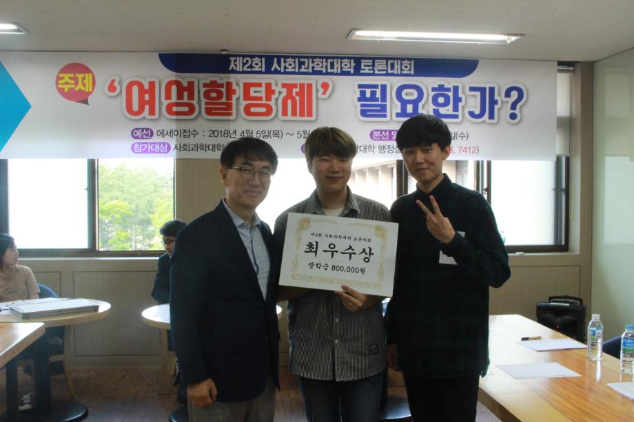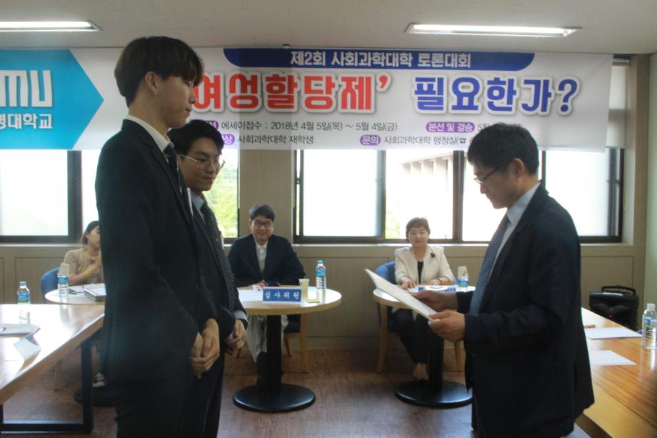본문 시작 홈으로 커뮤니티 대학소개 학과소개 입학안내 커뮤니티 홈페이지가이드 포토갤러리 대학소식 자료실 포토갤러리 포토갤러리 페이스북 트위터 프린트 제2회 사회과학대학 토론대회 시상식 사회과학대학 5857 2018-05-30 열띤 토론 끝에 호텔관광경영학과의 ‘최종병기’ 팀이 최우수상을 수상했습니다. 최우수상 수상팀에게 직접 상장 수여를 하시기 위해 대회장을 찾아주신 이용걸 총장님께 감사드립니다. 이것으로 제2회 사회과학대학 토론대회가 성황리에 마쳤습니다. 대회 지원을 위해 도와주신 교직원 여러분과 토론대회에 참여해주신 많은 학생들께 진심으로 감사드립니다. 목록 이전제2회 사회과학대학 토론대회 현장스케치2 다음 2018학년도 사회과학대학 취업특화프로그램 설명회 담당부서 : 사회과학대학 담당자 : - 연락처 : 043-649-7412 최종수정일 : 2024-10-26 만족도조사 만족도 조사 이 페이지에서 제공하는 정보에 대하여 만족하시나요? 매우만족 만족 보통 불만족 매우불만족