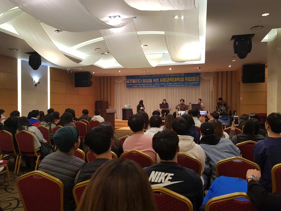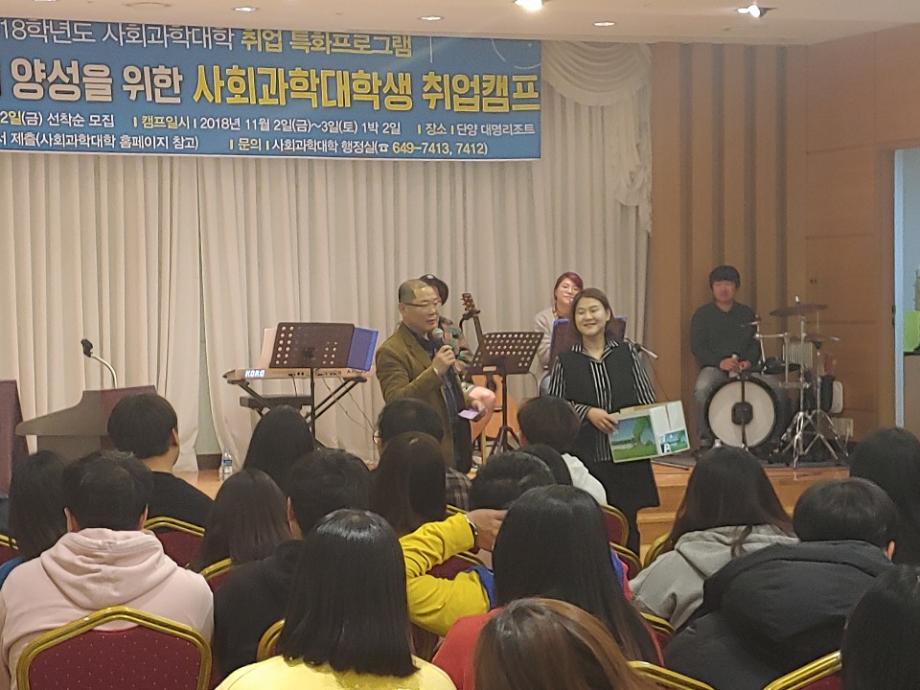 캠프 프로그램 쉬는시간마다 사회과학대학에서는 학생들께 취업준비하면서 힘들었던 점,