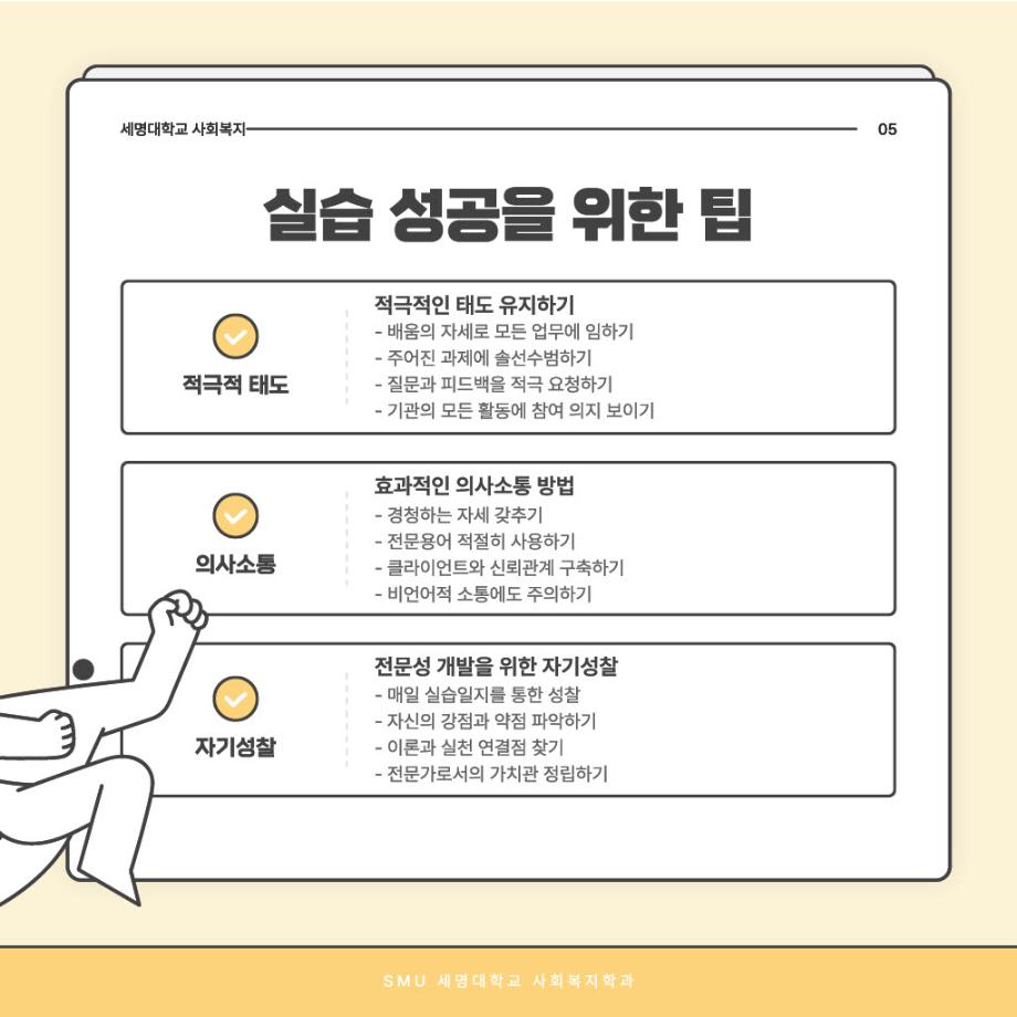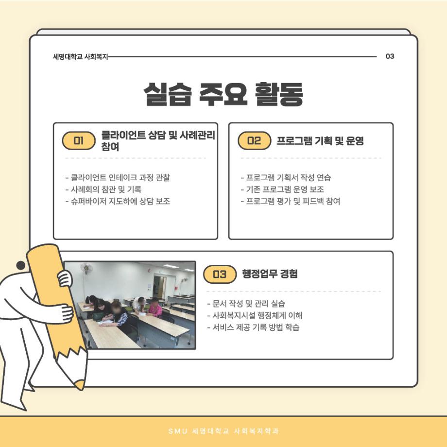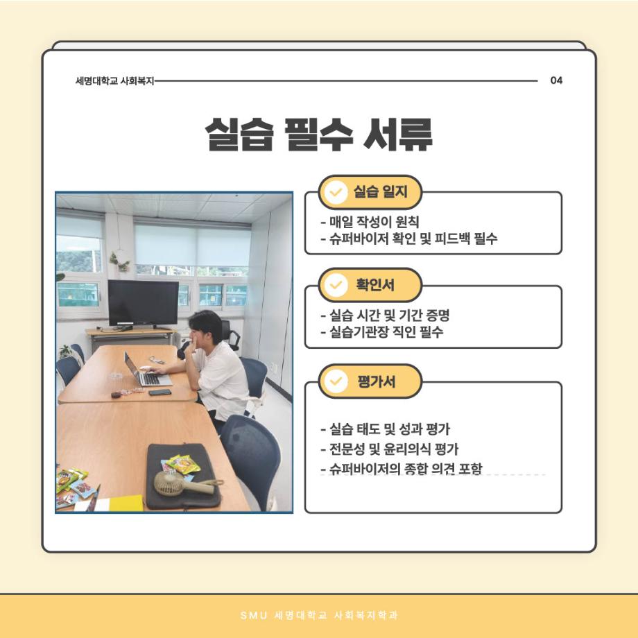 본문 시작 홈으로 커뮤니티 학과소개 교수소개 교육과정 현장실습 및 취업정보 커뮤니티 홈페이지가이드 학생 소통 광장 학과공지 학사일정 학생회 동아리 학생 소통 광장 포토갤러리 전공자료실 서식자료실 학생 소통 광장 페이스북 트위터 프린트 사회복지현장실습 과정 안내 사회복지학과 700 2025-09-03 오늘은 '사회복지현장실습 과정 안내'편입니다~ 목록 이전사회복지현장실습 알고 가자! 다음 중간고사 응원 간식나눔 담당부서 : 사회복지학과 담당자 : - 연락처 : 043-649-1799 최종수정일 : 2024-10-26 만족도조사 만족도 조사 이 페이지에서 제공하는 정보에 대하여 만족하시나요? 매우만족 만족 보통 불만족 매우불만족