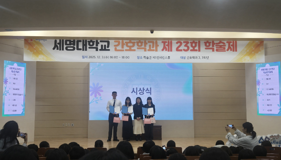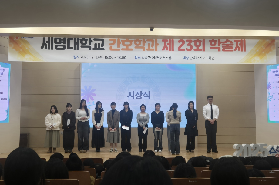 본문 시작 홈으로 커뮤니티 학과소개 교수소개 교육과정 학과소식 학과특성화 사업 커뮤니티 홈페이지가이드 포토갤러리 학사일정 포토갤러리 학생회 학과동아리 학과 취업정보 동창회 학과운영개선의견 발전기금 포토갤러리 페이스북 트위터 프린트 제 23회 간호학과 학술제 간호학과 541 2025-12-08 12/3 진행된 📝 2024 학술제 발표와 ✈ 해외 인턴십 경험 공유 후기가 학과 블로그에 업로드되었습니다. 발표 현장과 생생한 경험담이 궁금하다면 아래 링크를 확인해주세요 👇 🔗 링크 https://blog.naver.com/nursing_smu_official/224099825798 목록 이전📍 ‘임상실습 안전사고 ZERO를 위하여’ 특강 담당부서 : 간호학과 담당자 : - 연락처 : 043-649-1357 최종수정일 : 2024-10-26 만족도조사 만족도 조사 이 페이지에서 제공하는 정보에 대하여 만족하시나요? 매우만족 만족 보통 불만족 매우불만족
