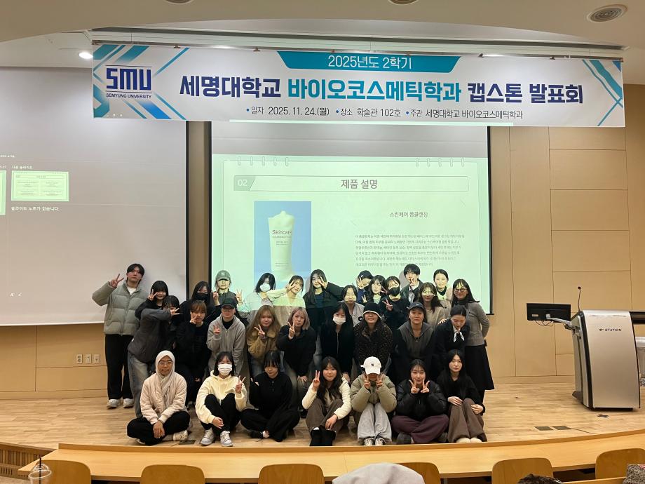본문 시작 홈으로 커뮤니티 학과소개 학과과정 대학원 커뮤니티 연구동아리 홈페이지가이드 포토갤러리 학과공지 채용정보 학과일정 포토갤러리 유튜브 인스타그램 취업현황 학생회 조직도 졸업생 숏터뷰 포토갤러리 페이스북 트위터 프린트 2025학년도 2학기 캡스톤 디자인 발표회 바이오코스메틱학과 372 2025-11-25 바이오코스메틱학과에서는 11월 24일 2025학년도 2학기 캡스톤 디자인 발표회를 진행하였습니다. 목록 이전2025학년도 5차 화장품생명공학세미나 다음 2025학년도 F.P.L 동아리 핸드크림 제조 실습 담당부서 : 바이오코스메틱학과 담당자 : - 연락처 : 043-649-1638 최종수정일 : 2024-10-26 만족도조사 만족도 조사 이 페이지에서 제공하는 정보에 대하여 만족하시나요? 매우만족 만족 보통 불만족 매우불만족