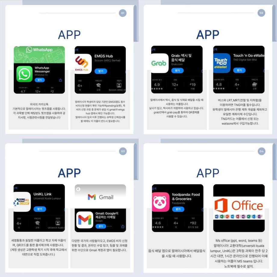 말레이시아로 교환학생을 준비 중이라면, 낯선 환경 속에서도 생활을 더 편리하게 만들어주는 ‘필수 어플’들을 미리 알아두는 게 중요합니다😀