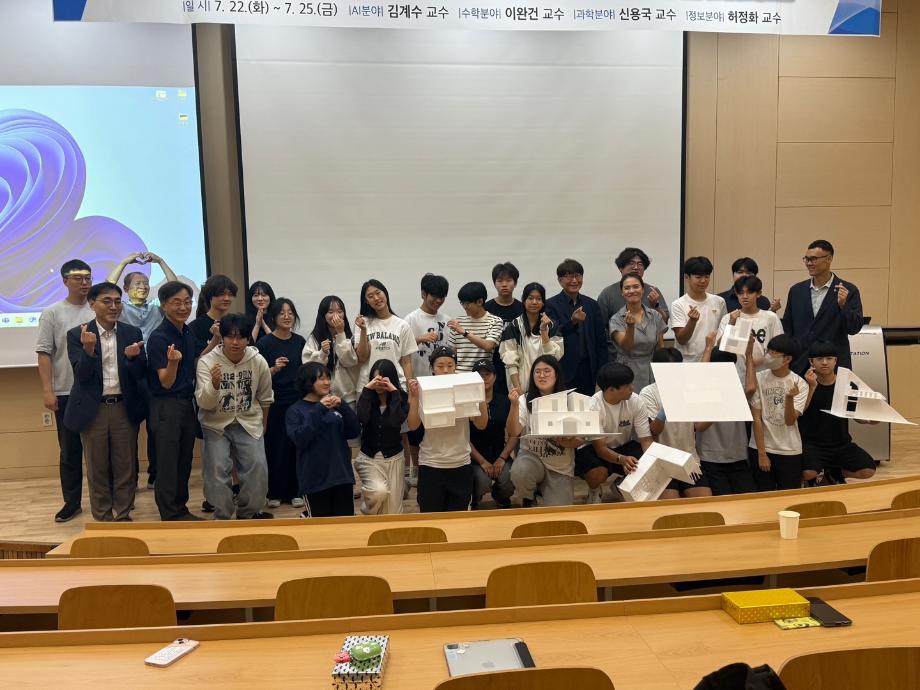 캠프에는 제천시 7개 중학교 3학년 학생 22명이 참가했으며, 운영 과목은 ▲내가 살고 싶은 집 만들기(이완건 교수) ▲인공지능과 빅데이터를 이용한 의사결정(김계수 교수) ▲우리 몸에는 어떤 미생물이 살고 있을까?(신용국 교수) ▲아두이노 센서를 활용한 스마트 세상 만들기(허정화 교수) 등 총 4개 분야로 구성됐다. 학생들은 조별로 실습과 탐구를 병행하며 대학 수준의 전공 체험을 수행했다.