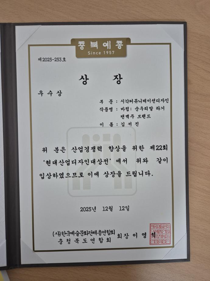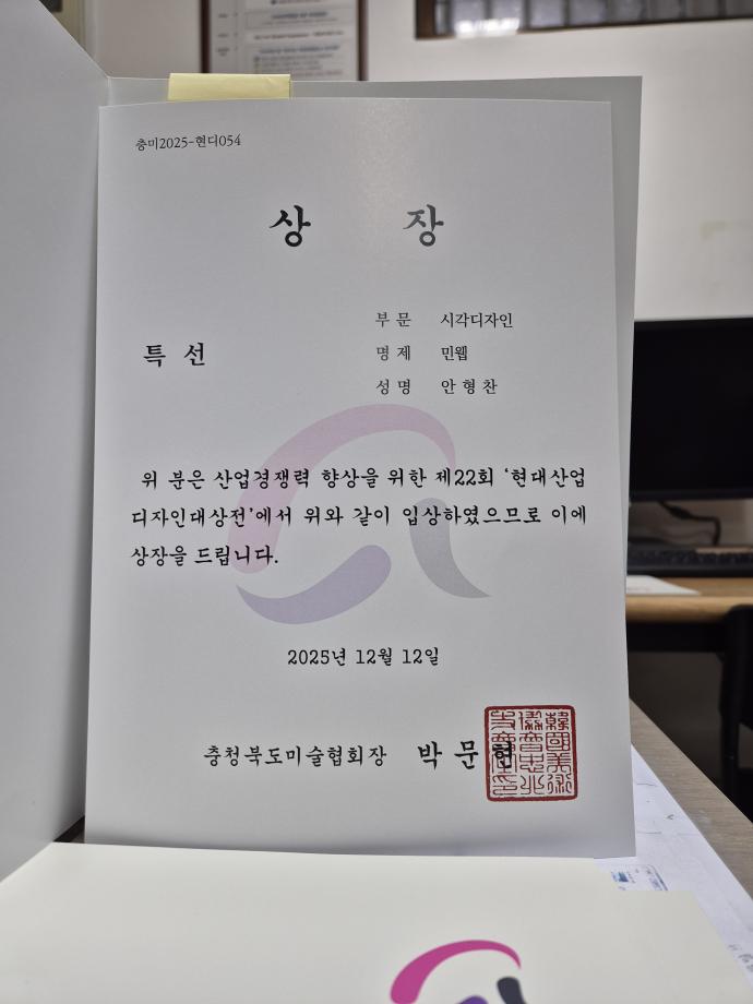 본문 시작 홈으로 학과자랑 학과소개 학과과정 시영소식 입학/취업 AI 학과자랑 SNS소통 홈페이지가이드 학과갤러리 학과자랑 학과갤러리 동아리 졸업전시회 학과갤러리 페이스북 트위터 프린트 제22회 현대산업디자인대상전 - 우수상, 특선 등 수상작 시각영상디자인학과 27 2025-12-13 우수상 - 1작, 특선 - 3작 입선 다수를 수상하엿습니다 목록 이전K-콘텐츠스쿨 의병제 문화 개발 교육프로그램 - 시각영상디자인학과 참여 학생 전시 담당부서 : 시각영상디자인학과 담당자 : - 연락처 : 043-649-1726 최종수정일 : 2024-10-26 만족도조사 만족도 조사 이 페이지에서 제공하는 정보에 대하여 만족하시나요? 매우만족 만족 보통 불만족 매우불만족