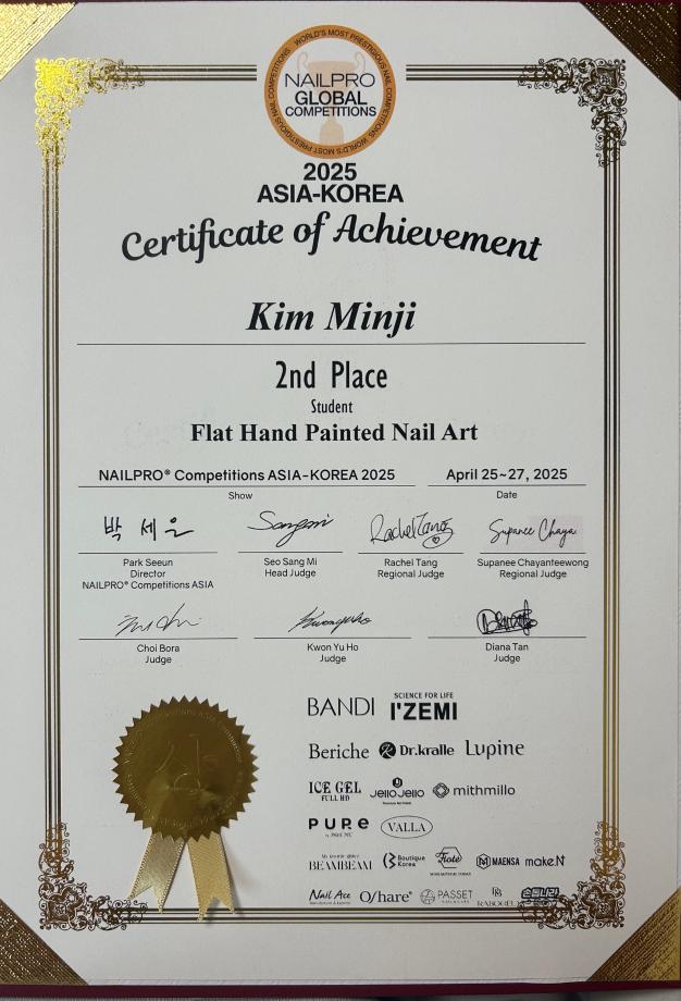 본문 시작 홈으로 커뮤니티 학과소개 교수소개 학과과정 커뮤니티 대학원 홈페이지가이드 포토갤러리 공지사항 채용정보 포토갤러리 Youtube 바로가기 Instargram 바로가기 Blog 바로가기 Facebook 바로가기 포토갤러리 페이스북 트위터 프린트 2025 아시아 네일프로글로벌컴피티션, 수상! 뷰티케어학과 425 2025-08-14 2025 아시아 네일프로글로발컴피티션 핸드페인팅 2등 뷰티케어학과 2학년 김민지 축하합니다~🎉👍😊 목록 다음 뷰티케어학과, 첫 졸업생 등장! 축하합니다! 다음 뷰티케어학과, NEW 네일실습실 공개!