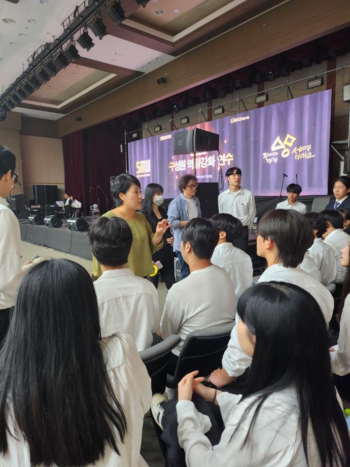 연기예술학과 과동아리인 뮤지컬 동아리 < 음악;音樂 >이 이정하 교수님과 이동준 교수님 지도하에 교직원 연수회에서 Circle of life / one day more 두 곡을 선보였습니다. 또한, 학생들이 추억의 광고를 리메이크 해 직접 영상으로 제작하였고 뉴스 앵커와 시사 채널 인물들을 관찰하여 풍자와 유머러스한 무대 공연이 이뤄졌습니다.