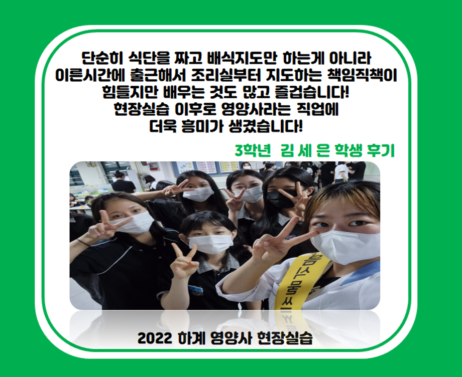 본문 시작 홈으로 커뮤니티 학부소개 진로·취업 교육과정 커뮤니티 대학원 입학상담 홈페이지가이드 갤러리 공지사항 갤러리 학생회 동문회 전공자료실 전공동아리 Youtube Instagram 갤러리 페이스북 트위터 프린트 2022 하계영양사 현장실습(동일여자고등학교) 바이오식품영양학부 1777 2022-07-13 목록 이전2022 하계영양사 현장실습(제천시청) 다음 2022 하계영양사 현장실습(목원푸드 코레일 승무원기숙식당) 담당부서 : 바이오식품영양학부 담당자 : - 연락처 : 043-649-1578 최종수정일 : 2024-10-26 만족도조사 만족도 조사 이 페이지에서 제공하는 정보에 대하여 만족하시나요? 매우만족 만족 보통 불만족 매우불만족