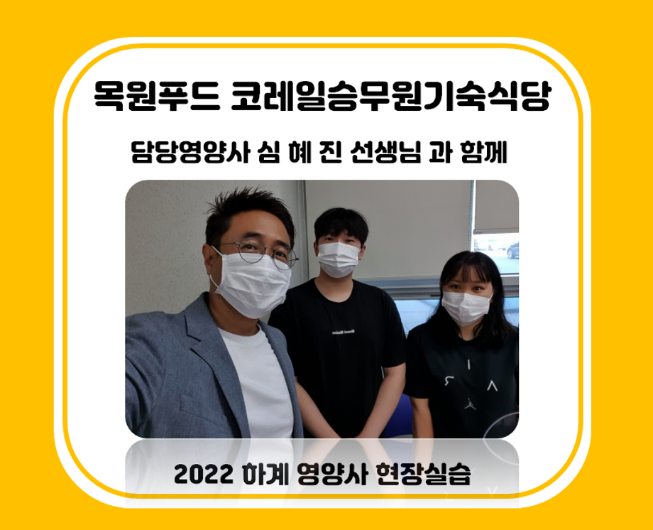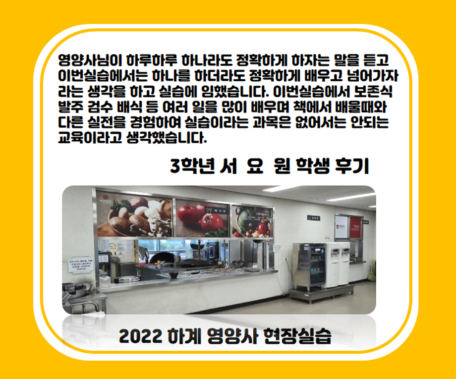 본문 시작 홈으로 커뮤니티 학부소개 진로·취업 교육과정 커뮤니티 대학원 입학상담 홈페이지가이드 갤러리 공지사항 갤러리 학생회 동문회 전공자료실 전공동아리 Youtube Instagram 갤러리 페이스북 트위터 프린트 2022 하계영양사 현장실습(목원푸드 코레일 승무원기숙식당) 바이오식품영양학부 1856 2022-07-18 목록 이전2022 하계영양사 현장실습(동일여자고등학교) 다음 2022 하계영양사 현장실습(제천어린이급식지원센터) 담당부서 : 바이오식품영양학부 담당자 : - 연락처 : 043-649-1578 최종수정일 : 2024-10-26 만족도조사 만족도 조사 이 페이지에서 제공하는 정보에 대하여 만족하시나요? 매우만족 만족 보통 불만족 매우불만족