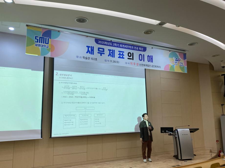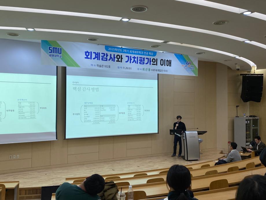 본문 시작 홈으로 학과소식 학과소개 취업정보 교육과정 학과소식 홈페이지가이드 학과행사 공지사항 포토갤러리 학과이야기 학과행사 학과행사 페이스북 트위터 프린트 2025학년도 2학기 회계세무학과 전공특강 회계세무금융학과 81 2025-11-27 2025학년도 2학기 회계세무학과 전공특강을 진행하였습니다~! 목록 이전2025학년도 2학기 회계세무학과 전문가 특강 다음 회계세무학과 종강총회 만족도조사 만족도 조사 이 페이지에서 제공하는 정보에 대하여 만족하시나요? 매우만족 만족 보통 불만족 매우불만족