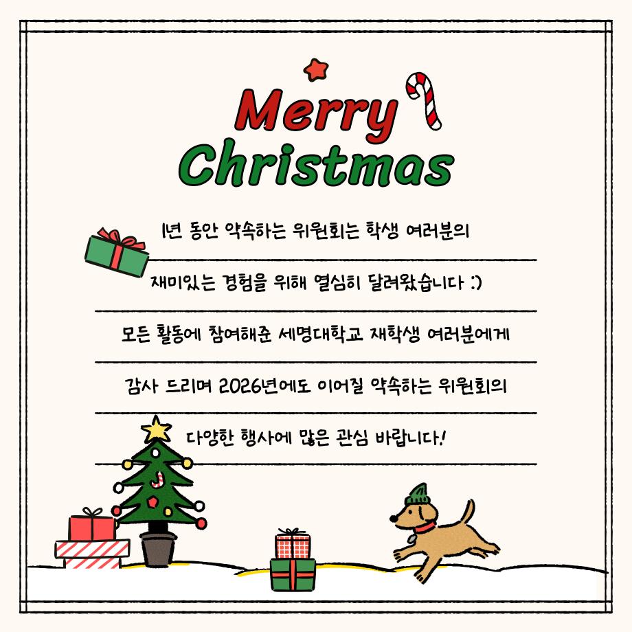 본문 시작 홈으로 포토갤러리 학생위원회 개요 학생위원회 소개 공지사항 활동결과 홈페이지가이드 포토갤러리 페이스북 트위터 프린트 [약속하는,생각하는 위원회] 세명파티시에 학술정보원 177 2025-11-17 안녕하세요 재미있는 경험을 위한 학생위원회 '약속하는 위원회' 입니다! 약속하는 위원회 행사인 세명 파티시에 활동이 성황리에 마무리 되었습니다 :) [세명 파티시에 행사 결과] 일시: 2025년 11월 11일(월) ~ 11월 12일(화) 장소: 도서관 1층 로비 행사 참여자: 85명 1년 동안 약속하는 위원회와 함께 해주셔서 감사드리며, 추후에 이어질 약속하는 위원회 활동에도 많은 관심 바랍니다!! 목록 이전[꽃피는 위원회] 꽃 돌려라 피어라 다음 [생각하는 위원회] 담당부서 : 장학복지팀 담당자 : - 연락처 : 043-649-1142 최종수정일 : 2024-10-26 만족도조사 만족도 조사 이 페이지에서 제공하는 정보에 대하여 만족하시나요? 매우만족 만족 보통 불만족 매우불만족