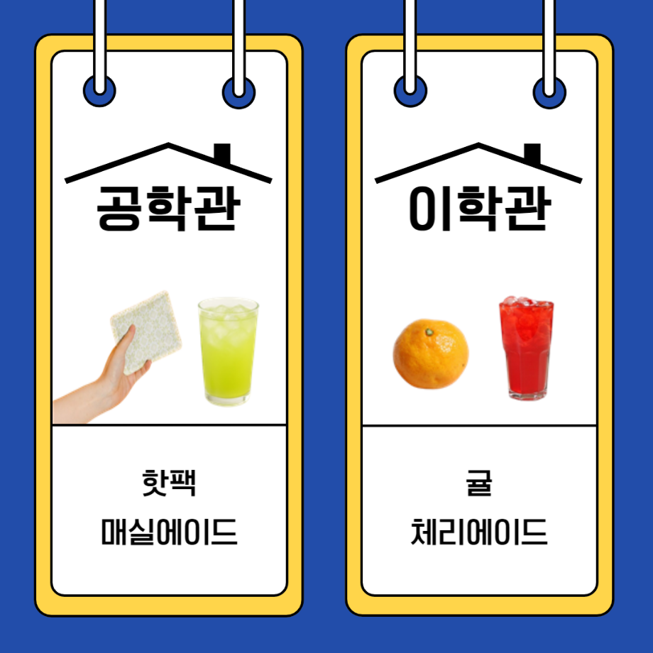 본문 시작 홈으로 공지사항 학생위원회 개요 학생위원회 소개 공지사항 활동결과 홈페이지가이드 프로그램 계획 프로그램 계획 세명대학교 공지사항 프로그램 계획 페이스북 트위터 프린트 [맛있는 위원회] 숨터에 놀러오세요 학생처 215 2025-11-18 1. 행사명: 제2차 숨터 활성화 2. 일시: 2025. 11. 18. (화), 13:00 ~ 15:00 3. 장소: 공학관 숨터 및 이학관 숨터 4. 내용: 학관별 물품 나눔 및 추가 물품 비치 가. 학관별 물품 나눔 1) 공학관 숨터: 매실에이드 및 핫팩 2) 이학관 숨터: 체리에이드 및 귤 나. 추가 물품 비치 - 공학과 숨터 및 이학관 숨터에 충전기, 멀티탭, 볼펜, 보드게임 추가 비치 목록 이전[생각하는 위원회/ 약속하는 위원회] 세명파티시에 다음 제 4회 학생위원회 최종보고회 시행 담당부서 : 장학복지팀 담당자 : - 연락처 : 043-649-1142 최종수정일 : 2024-10-26 만족도조사 만족도 조사 이 페이지에서 제공하는 정보에 대하여 만족하시나요? 매우만족 만족 보통 불만족 매우불만족