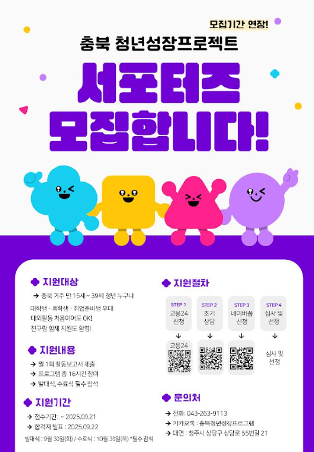 본문 시작 홈으로 MCC News 학과소개 교수소개 학과과정 MCC News MCC SNS 홈페이지가이드 미디어 정보통 학과 및 재학생 교수 및 졸업생 미디어 정보통 미디어 정보통 페이스북 트위터 프린트 충북 청년성장프로젝트 안내 미디어콘텐츠창작학과 656 2025-09-16 충북 청년성장프로젝트 안내해드립니다. 목록 이전2025학년도 2학기 원어민 교수와의 대화 이전「2025년 농업·농촌 영상·사진 공모전」 담당부서 : 미디어콘텐츠창작학과 담당자 : - 연락처 : 043-649-1741 최종수정일 : 2024-10-26 만족도조사 만족도 조사 이 페이지에서 제공하는 정보에 대하여 만족하시나요? 매우만족 만족 보통 불만족 매우불만족