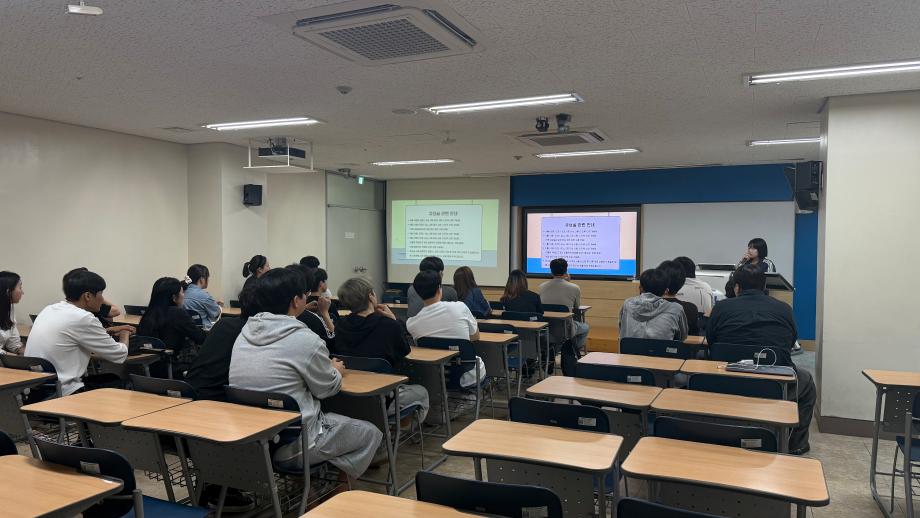 본문 시작 홈으로 학과 커뮤니티 학부소개 교수소개 교육목표 입학안내 학과 커뮤니티 대학원 커뮤니티 홈페이지가이드 학과 갤러리 학과소식 학사일정 학과 갤러리 학과 갤러리 페이스북 트위터 프린트 2025학년도 2학기 개강총회 상담심리학과 292 2025-09-10 안녕하십니까 세명대학교 상담심리학과입니다! 지난 9일 상담심리학과는 2학기 개강총회를 진행했습니다. 교수님들과 함께 이번 학기를 계획하고 선후배 간 친목을 다질 수 있는 좋은 시간이 되었습니다 :) 목록 이전심리 관련 영화 및 드라마 다음 한국여성심리학회 주최 2025년도 학술연구공모전 장려상 수상 만족도조사 만족도 조사 이 페이지에서 제공하는 정보에 대하여 만족하시나요? 매우만족 만족 보통 불만족 매우불만족