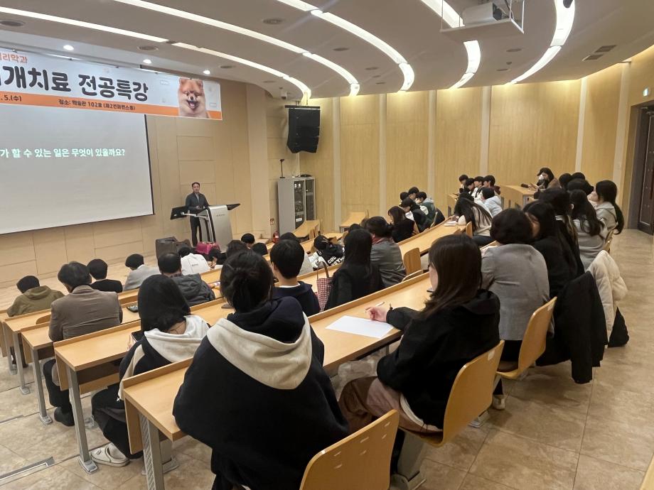 본문 시작 홈으로 학과 커뮤니티 학부소개 교수소개 교육목표 입학안내 학과 커뮤니티 대학원 커뮤니티 홈페이지가이드 학과 갤러리 학과소식 학사일정 학과 갤러리 학과 갤러리 페이스북 트위터 프린트 동물매개치료 전공특강 상담심리학과 174 2025-11-10 안녕하세요 세명대학교 상담심리학과입니다! 지난 5일 학술관 컨퍼런스홀에서 동물매개치료 전공특강이 진행되었습니다! 동물매개치료 관련 이론을 배우며 전공 능력을 함양할 수 있는 뜻깊은 시간이었습니다 :) 목록 다음 2025학년도 Step Up! SMU창업캠프 및 경진대회 다음 나와 어울리는 심리이론은? 만족도조사 만족도 조사 이 페이지에서 제공하는 정보에 대하여 만족하시나요? 매우만족 만족 보통 불만족 매우불만족